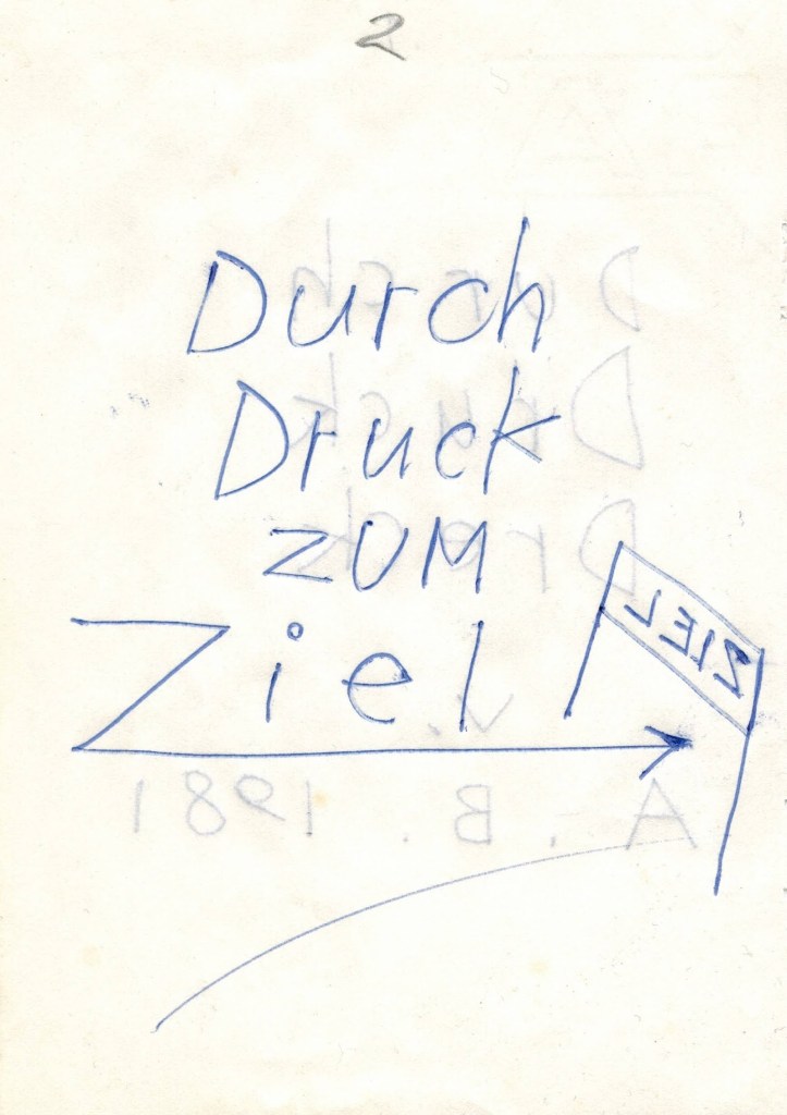 Durch Druck Dreck Anton Bruhin, Zürich, 1981 Artist Book “Durch Druck Dreck”, 15 x 14.8 cm, ball pen and blueprint drawingsGift from Anton Bruhin to Ernesto Baltiswiler